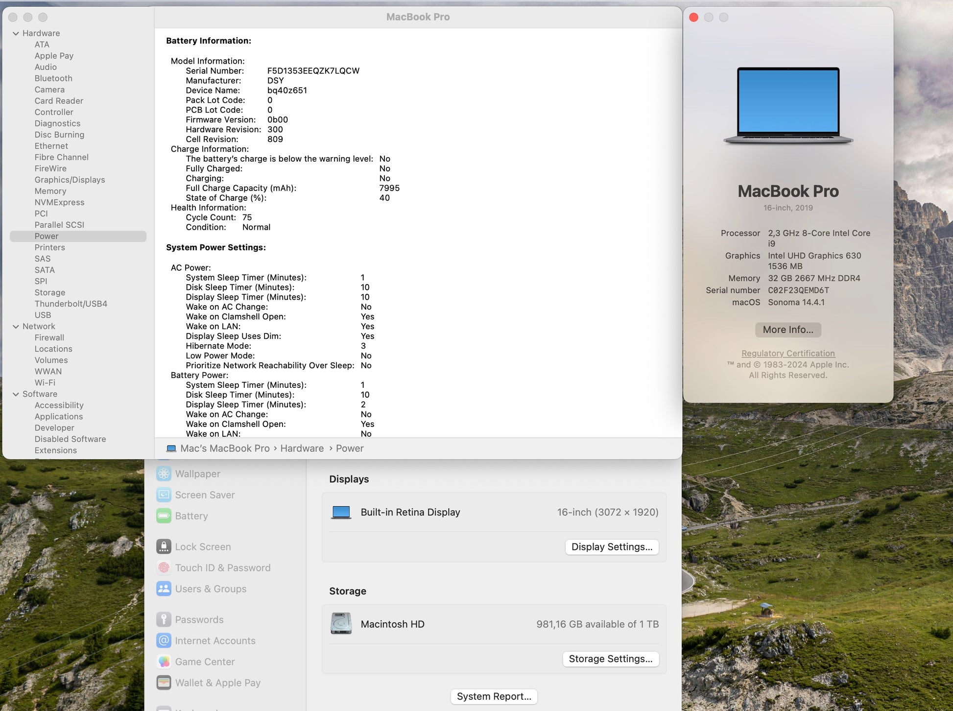 Apple 2019 16" MacBook Pro 2.3GHz 8-Core i9 32GB 1TB SSD RP5500M 8GB - 75 Cycles