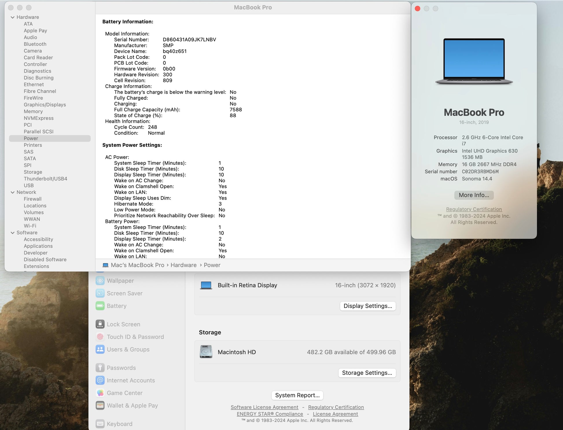 This 2019 MacBook Pro in Very good condition, with a slight discoloration on the display. The discoloration is noticeable on a white background and appears as a slight bluesh tint. However, it does not affect the overall functionality of the computer and does not impact the display's visibility or clarity. There are also minor scratches, Dents throughout it's entirety and it may also show scratch on the top right of the screen from normal use. The computer is otherwise in great condition, and works perfectly. The battery has been well cared for with only 248 cycles! and retains excellent charge capacity, It comes with its original charger and is ready to use straight out of the box. Please refer to the pictures for a better understanding of the condition