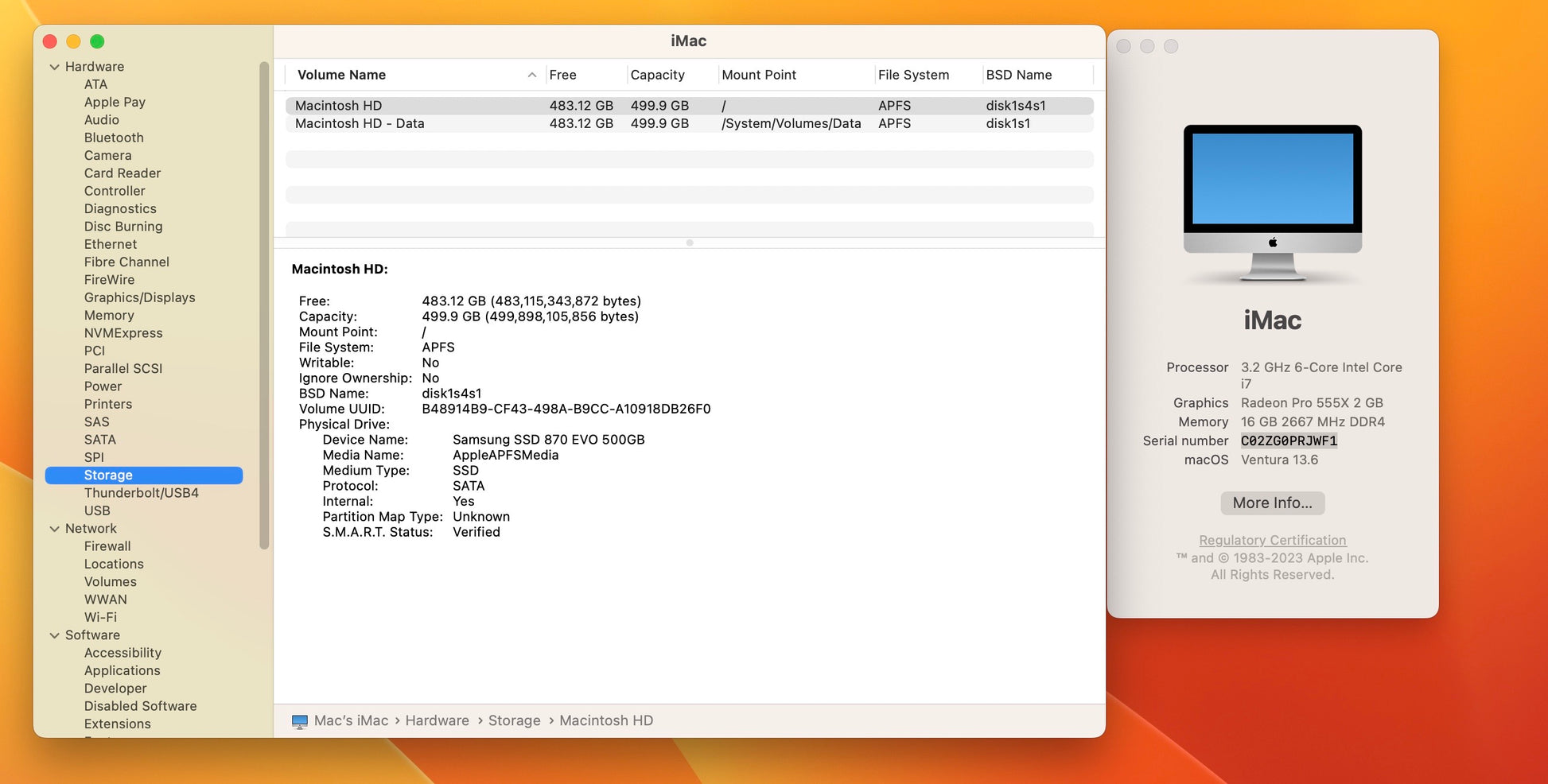 Apple 2019 21.5" 4k iMac 3.2GHz 6-Core i7 16GB 512GB SSD RP555X 2GB- Very Good