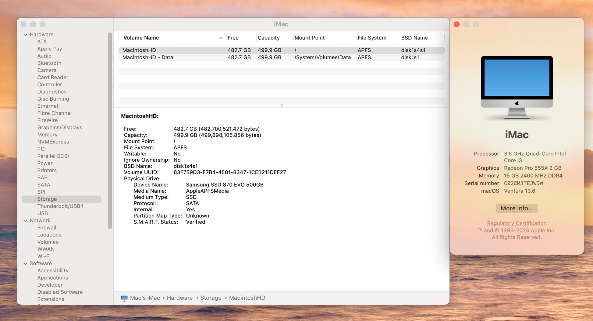 Apple 2019 21.5" 4K iMac 3.6GHz Quad-Core i3 16GB 512GB SSD RP555X 2GB- Good