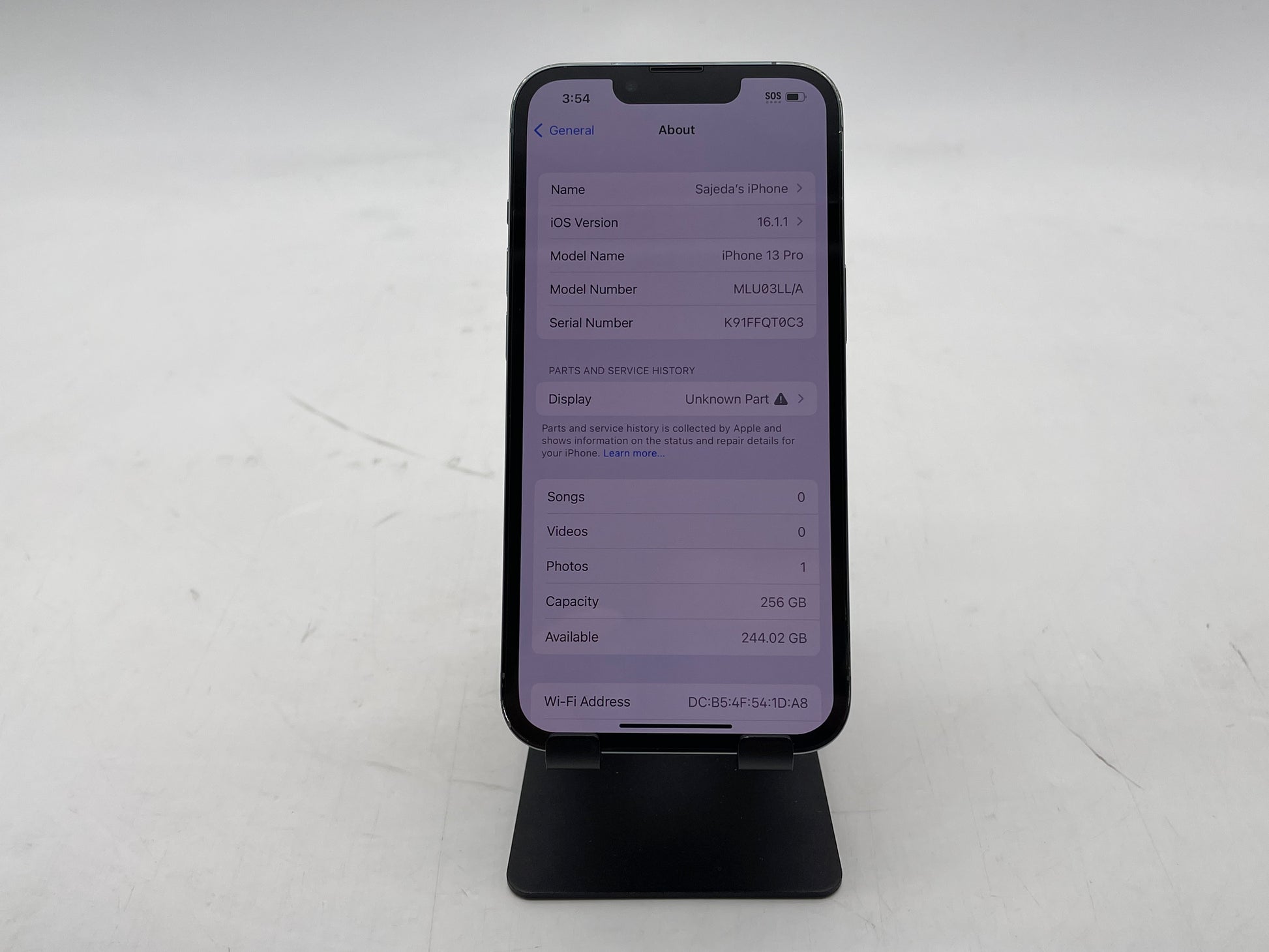 This Pre-Owned iPhone is in excellent condition with minimal signs of wear. There are no scratches on the screen at all as the Screen of the phone was just replaced and it's brand new (It may show Display unknown part alert). The iPhone 13 pro comes unlocked, allowing you the freedom to use it with any compatible network provider. It has been thoroughly tested to ensure all features, including the camera, display, speakers, and buttons, are fully functional and operational. with a battery health 85%, ensuring long-lasting performance and reliability for all your needs. Furthermore, This iPhone comes with its original charger, providing optimal charging efficiency. This iPhone 13 pro strike the perfect balance between premium functionality and affordability, making them an ideal choice for anyone looking for the quality and features of a current iPhone model without the price tag of a brand-new unit. Please refer to the pictures for a better understanding of the condition