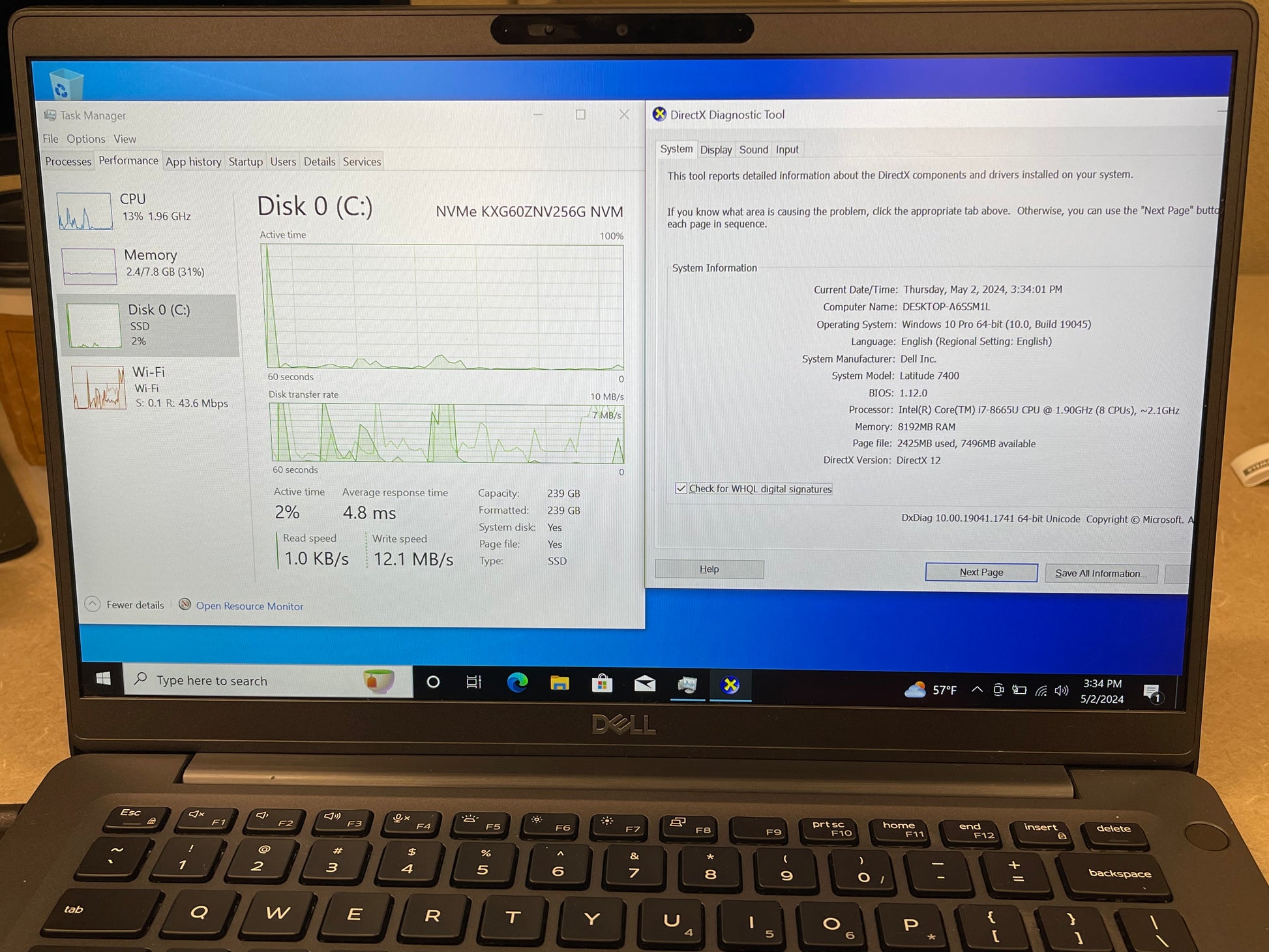 Dell 2019 14" Latitude 7400 1.9GHz i7-8665U 8GB RAM 256GB SSD W10 Pro -Excellent