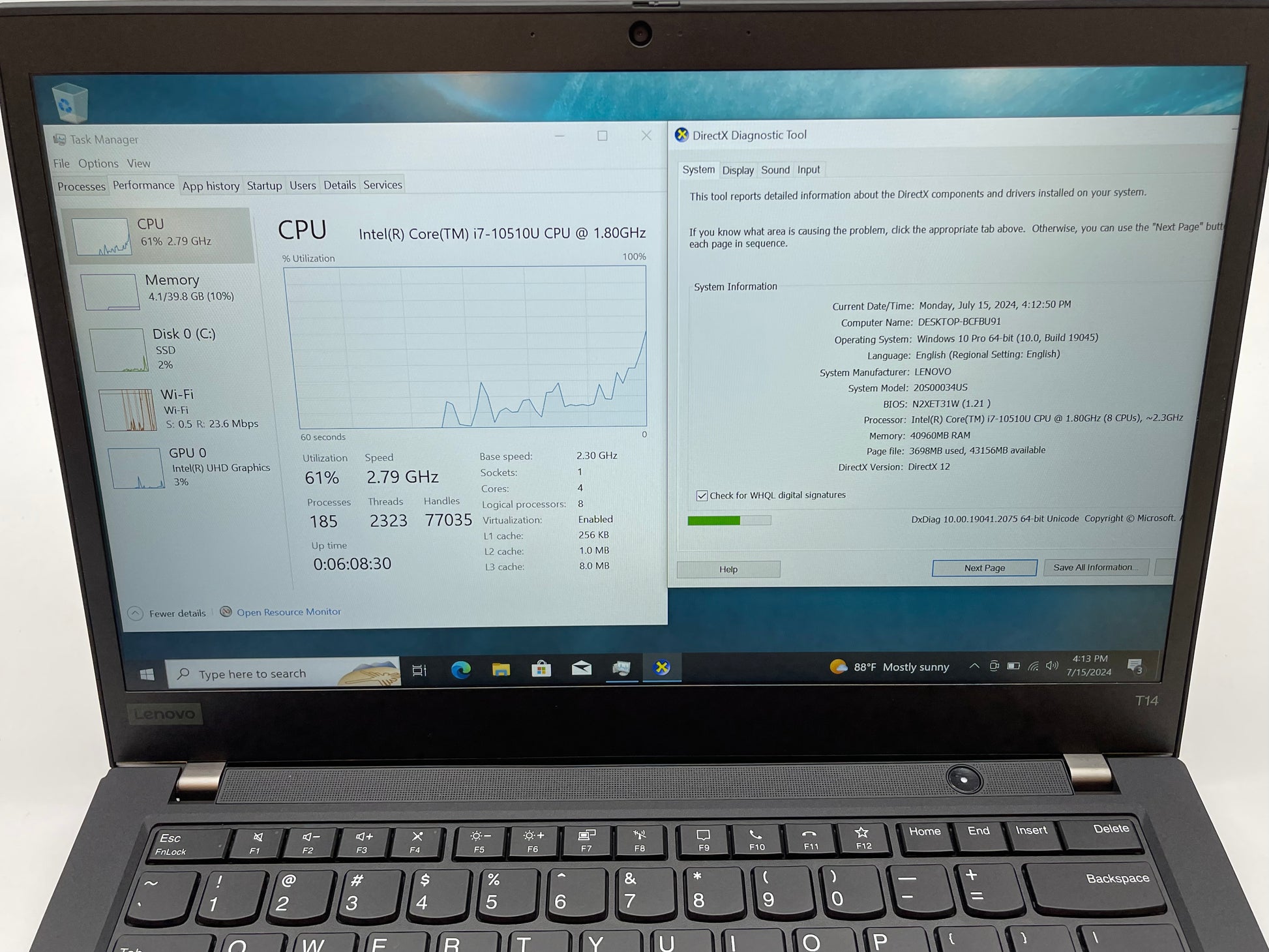Lenovo ThinkPad T14 Gen 1 14" 1.8GHz i7-10510U 40GB RAM 512GB SSD Win 10P- READ